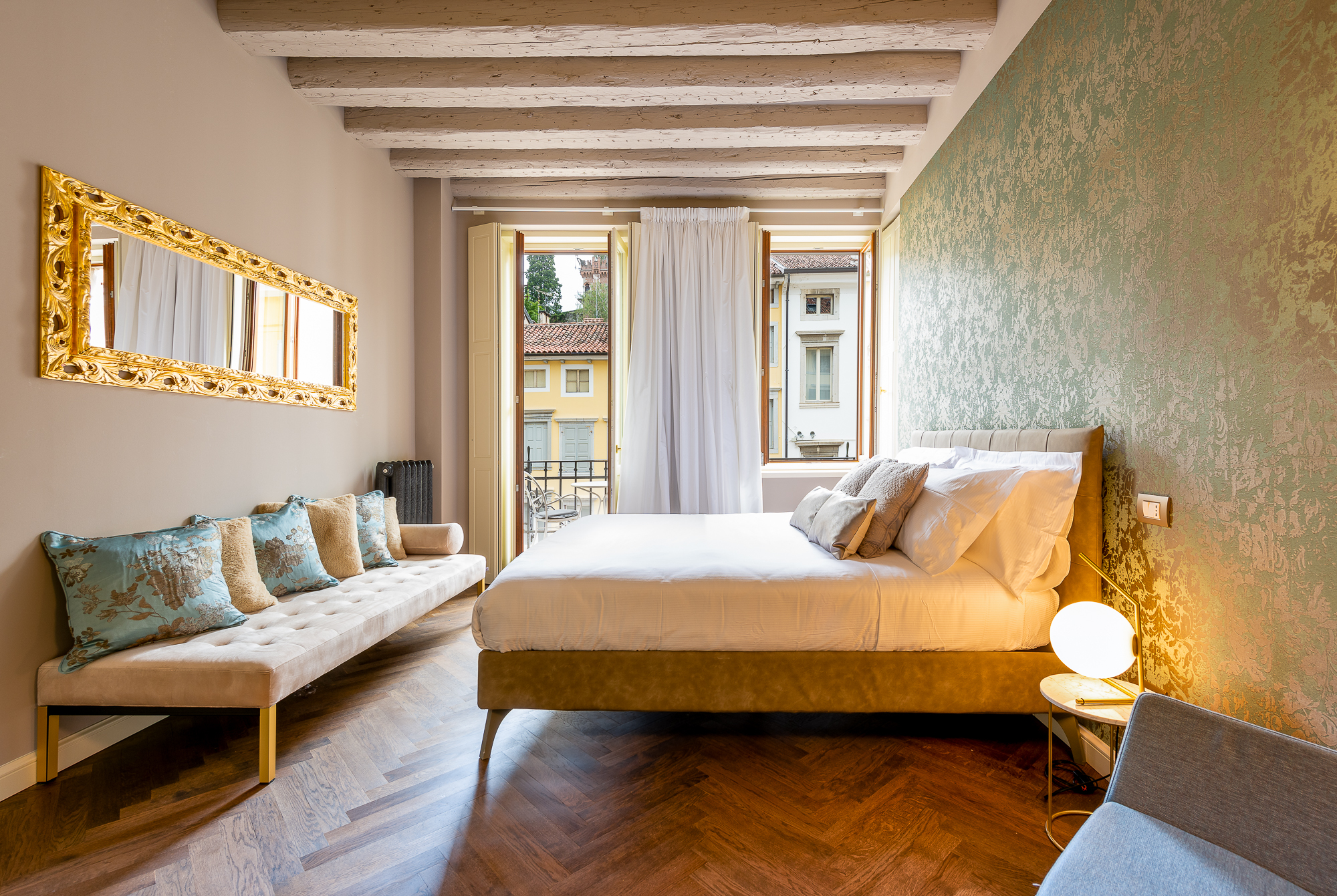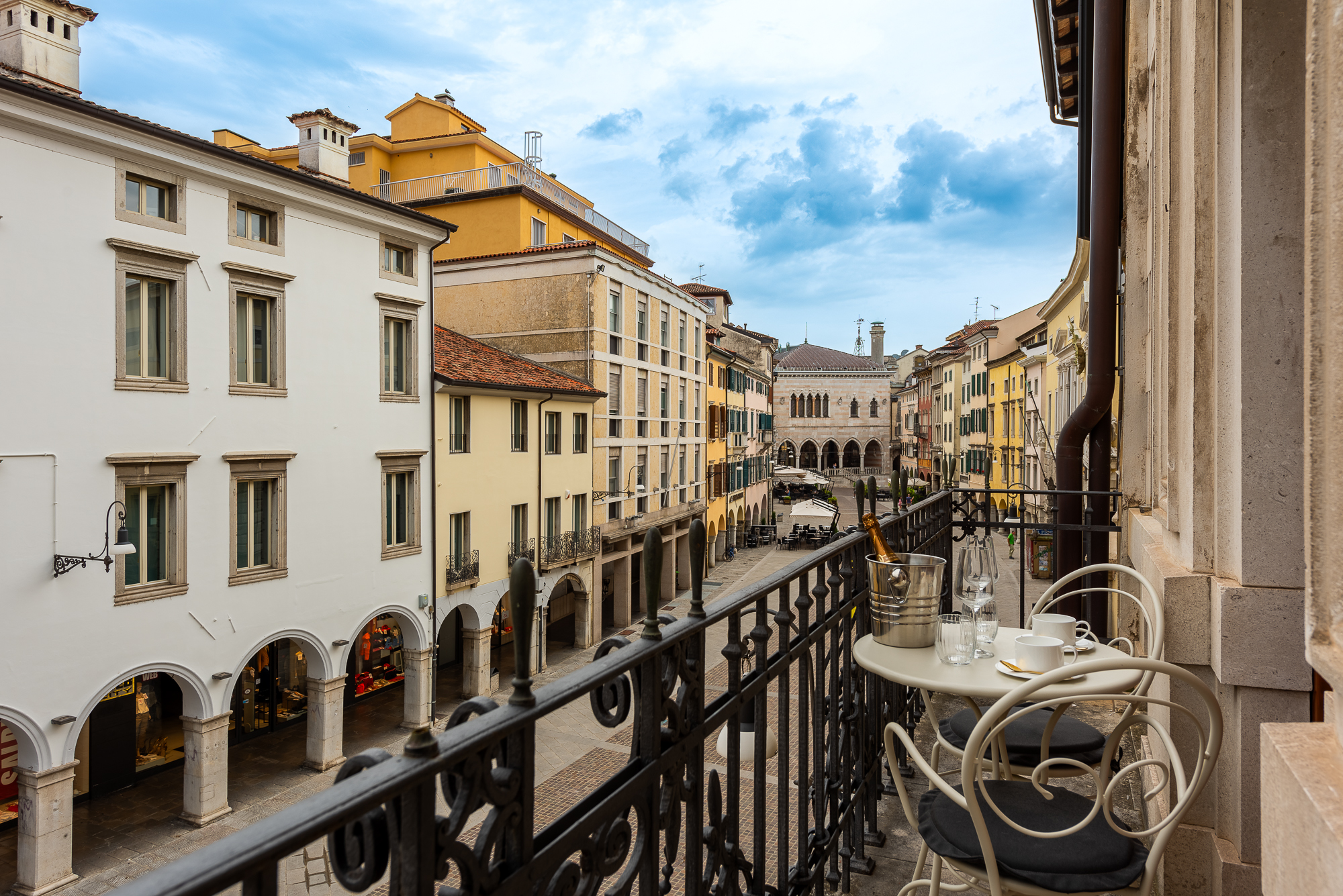 Welcome to PALAZZO DUOMO Suites in Udine Center, the ideal reference point for your stay in our beautiful Udine. Central location and elegance are the factors that characterize us, the accommodation is located no more than a 10-minute walk from the Udine train station and a stone's throw from the main points of interest that our city can offer you. Palazzo Duomo rises on a building from around 1300, completely renovated while maintaining the class and elegance that characterize the period. The structure consists of three floors plus an additional "roof terrace" level. Upon entering, you will be immediately greeted by a staircase that leads to the first floor where, in addition to the "hall", you will immediately find the Vienna suite and the Budapest suite. Continuing up the elegant staircase to the second floor, we find Kyoto and Malindi. Finally, on the third and top floor, we find the main Paris suite and the common space that includes a laundry room with washing machine and dryer, as well as a modern and complete kitchen available for any guest.